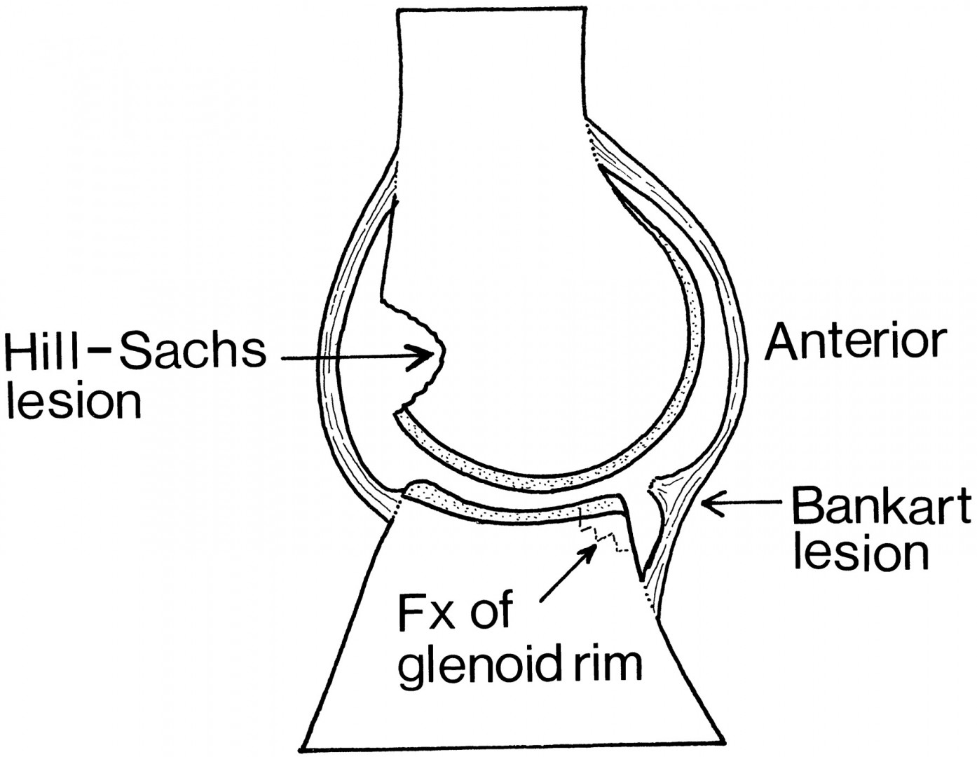Lesão grave ou trauma, é muitas vezes a causa de uma luxação do ombro inicial. Quando a cabeça do úmero se desloca , o osso ( glenóide ) e os ligamentos na frente do ombro são muitas vezes feridos. O labrum - a borda da cartilagem ao redor da borda da glenóide - também pode rasgar. Isto é comumente chamado de uma lesão de Bankart . A primeira luxação grave pode levar a deslocamentos contínuos ou uma sensação de instabilidade.